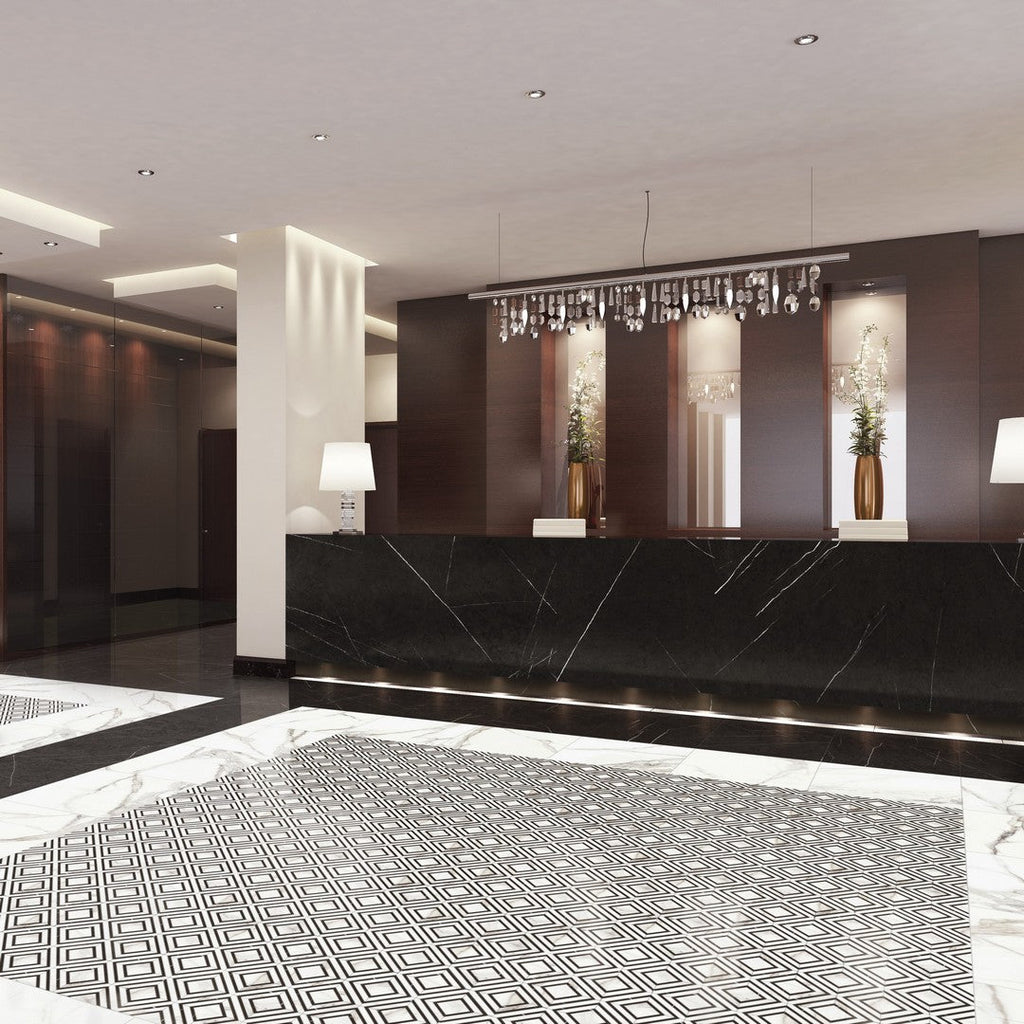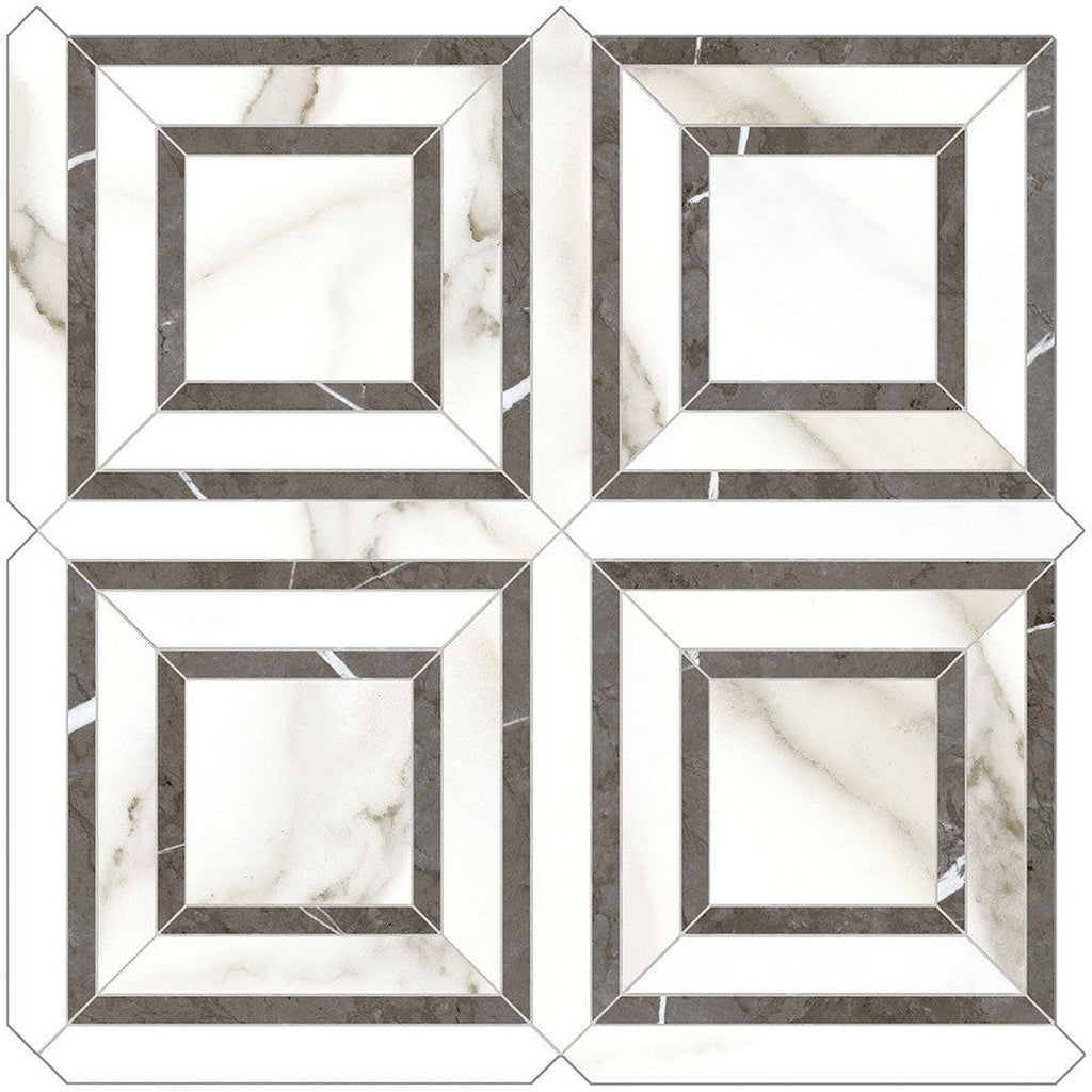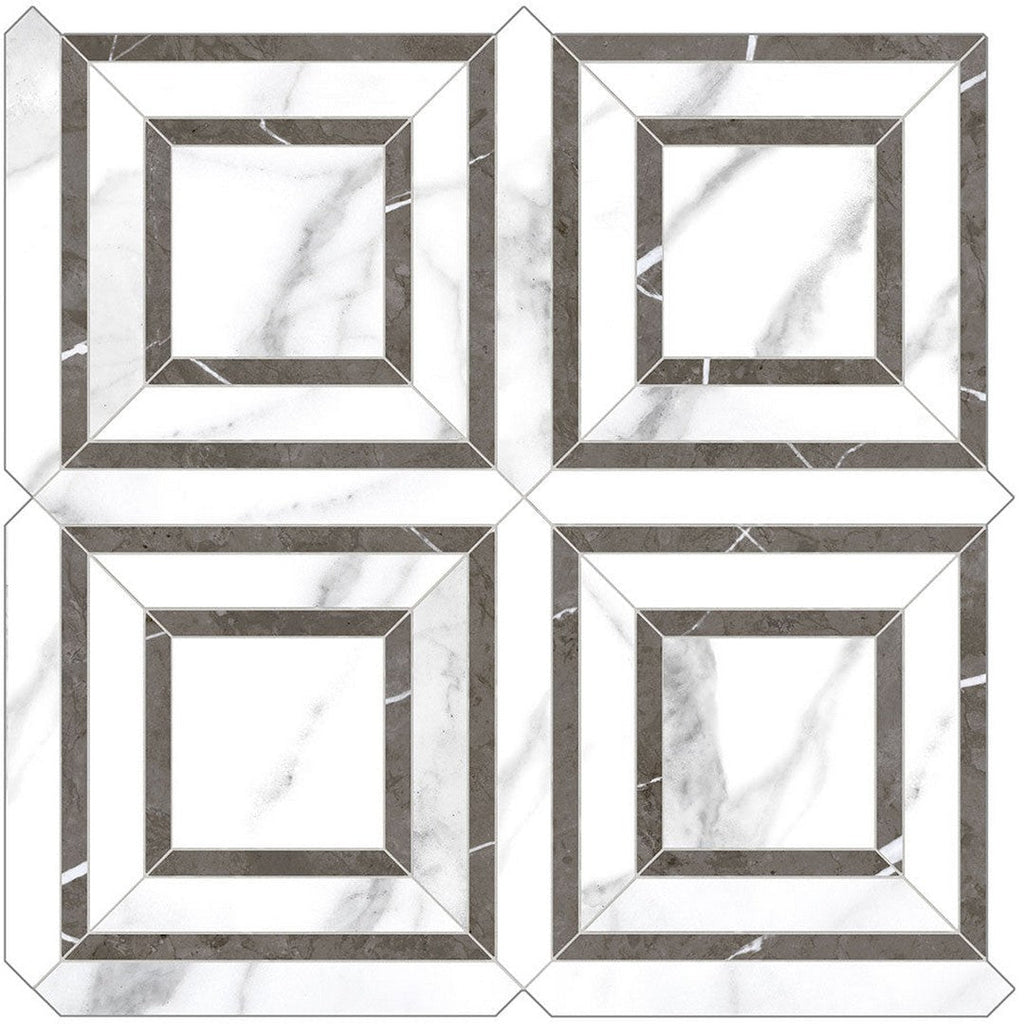 Tesoro Mayfair 11.75" x 11.75" Rectified Polished Piazza Porcelain Mosaic creates dynamic visual interest with its structured, polished piazza pattern. This 11.75x11.75 rectified porcelain mosaic is an ideal choice for decorative floors or walls, merging geometric precision with a reflective finish.