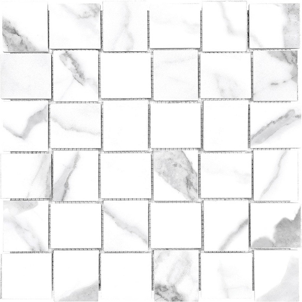 Tesoro Mayfair 12" x 12" Rectified Polished Basketweave Porcelain Mosaic offers a sophisticated, shimmering take on a classic pattern with its polished finish. This 12x12 rectified porcelain mosaic is perfect for adding a luxurious, textured look to backsplashes, shower surrounds, or light-traffic flooring.