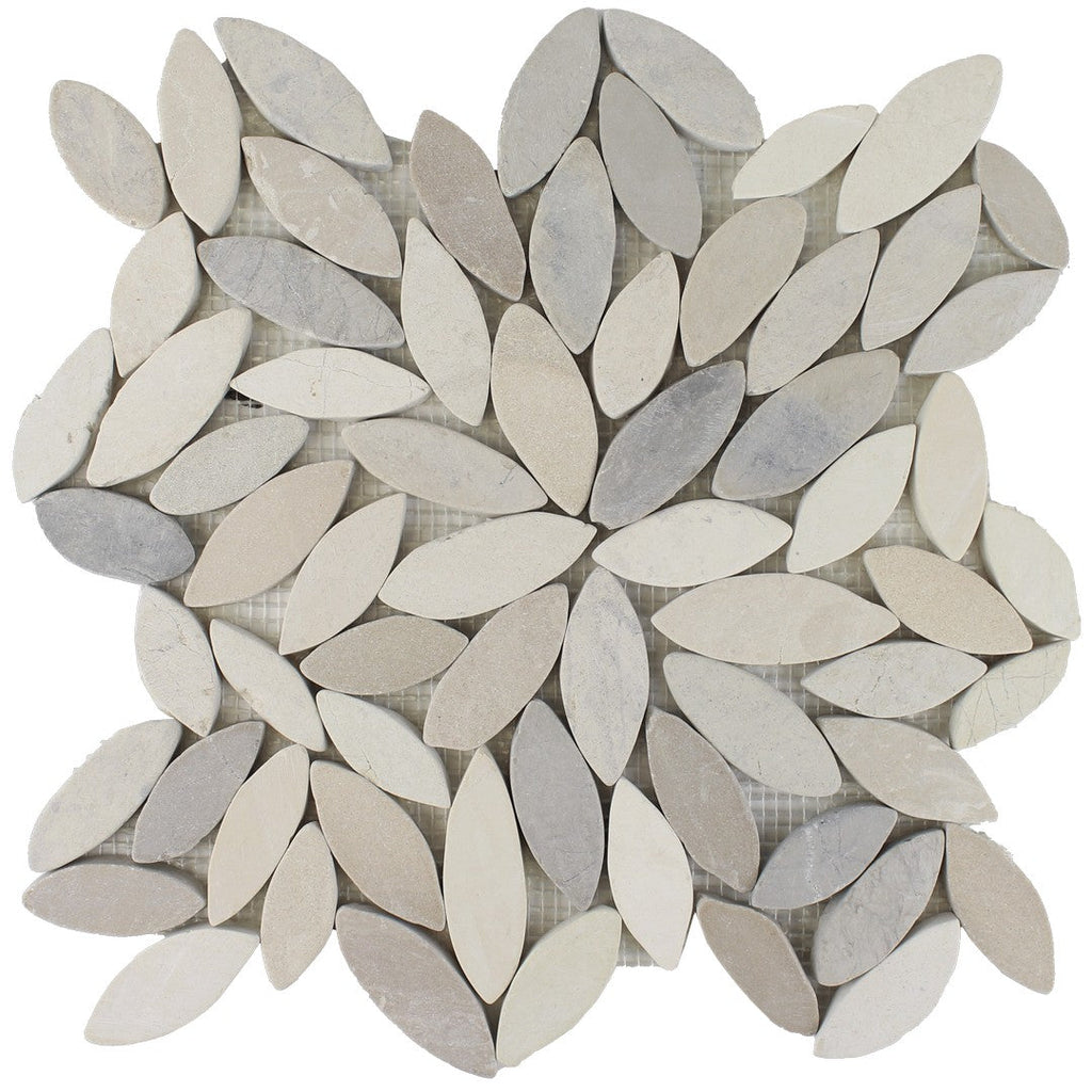 Tesoro Ocean Stones 11.75" x 11.75" Natural Stone Sliced Flower Mosaic brings the beauty of nature into any space with its delicate flower pattern crafted from hand-selected stones. Each mosaic features organic textures and soft, coastal tones that evoke the tranquility of ocean waves. Ideal for walls, backsplashes, or accent areas, this mosaic combines artistry and natural elegance to create a serene, spa-like ambiance in any room.
