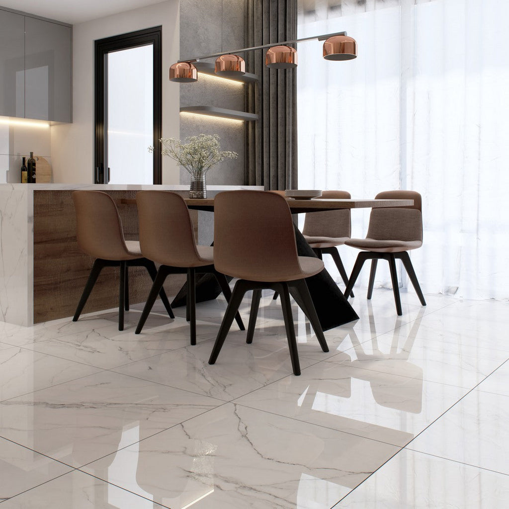 Tesoro Olimpo 28" x 28" Rectified Polished Porcelain Tile: The Tesoro Olimpo 28" x 28" Rectified Polished Porcelain Tile delivers a show-stopping finish with its brilliant polish and substantial size. Ideal for achieving an uninterrupted, highly reflective surface, this premium polished porcelain tile is a statement piece for upscale residential and commercial projects seeking contemporary luxury.