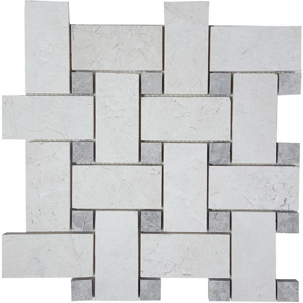Tesoro Pietra Antica Antiqued Stones 12" x 12" Interlocking Brushed Natural Stone Basketweave Mosaic is a classic and elegant choice for adding intricate detail to a space. The basketweave pattern of this brushed natural stone mosaic creates a sophisticated, woven look perfect for floors and walls. The Tesoro Pietra Antica mosaic brings a sense of timeless charm and natural texture to any design.