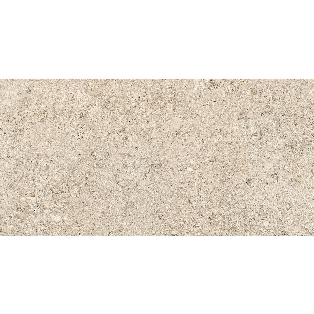 Tesoro Shellstone 12" x 24" Rectified Matte Porcelain Tile offers a versatile and sophisticated stone-look in this popular 12" x 24" rectified matte porcelain tile format, suitable for walls and floors. This precise Shellstone porcelain tile minimizes grout lines, creating a seamless, elegant surface ideal for modern kitchen or bathroom renovations.