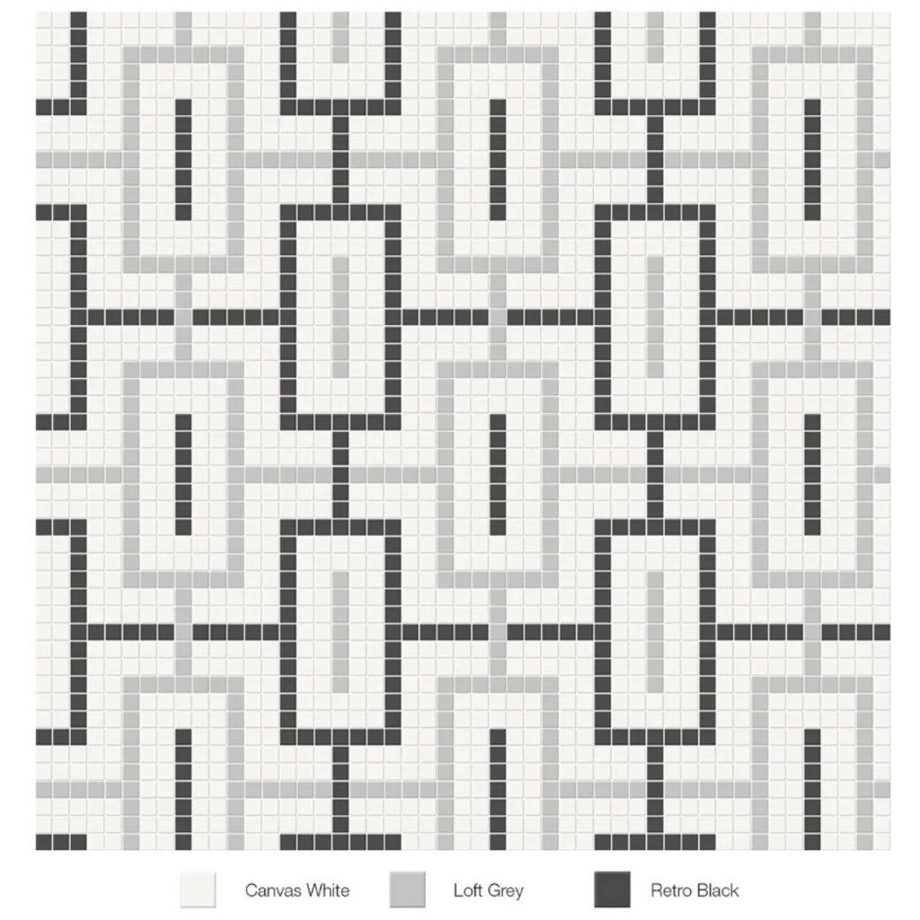 Tesoro Soho 11.50" x 11.50" Pressed Matte Porcelain Chain Blend Mosaic is a highly decorative option, featuring a unique chain blend pattern in a resilient matte porcelain construction. Ideal as a statement backsplash or shower floor mosaic, this 11.5x11.5 Soho tile adds intricate detail and visual flow to any residential or light commercial setting.