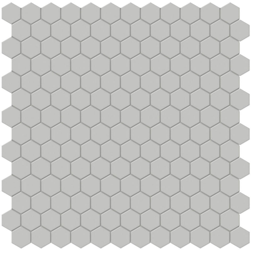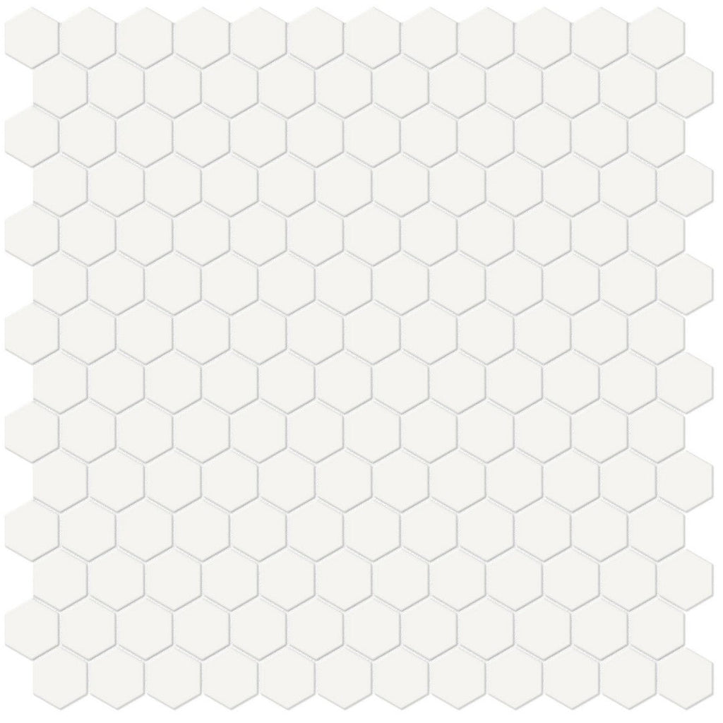 Tesoro Soho 11.75" x 11.5" Pressed Matte Porcelain 1" Hexagon Mosaic provides a foundational, geometric elegance with its classic 1-inch hexagon mosaic layout. Durable and versatile, this matte porcelain 11.75x11.5 tile is perfect for achieving a retro or contemporary look on floors and walls in high-traffic areas.