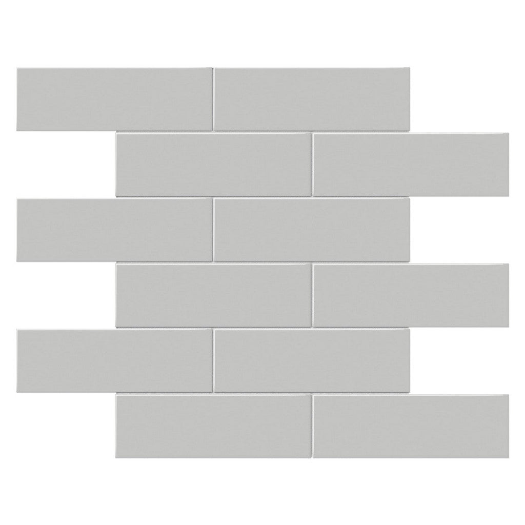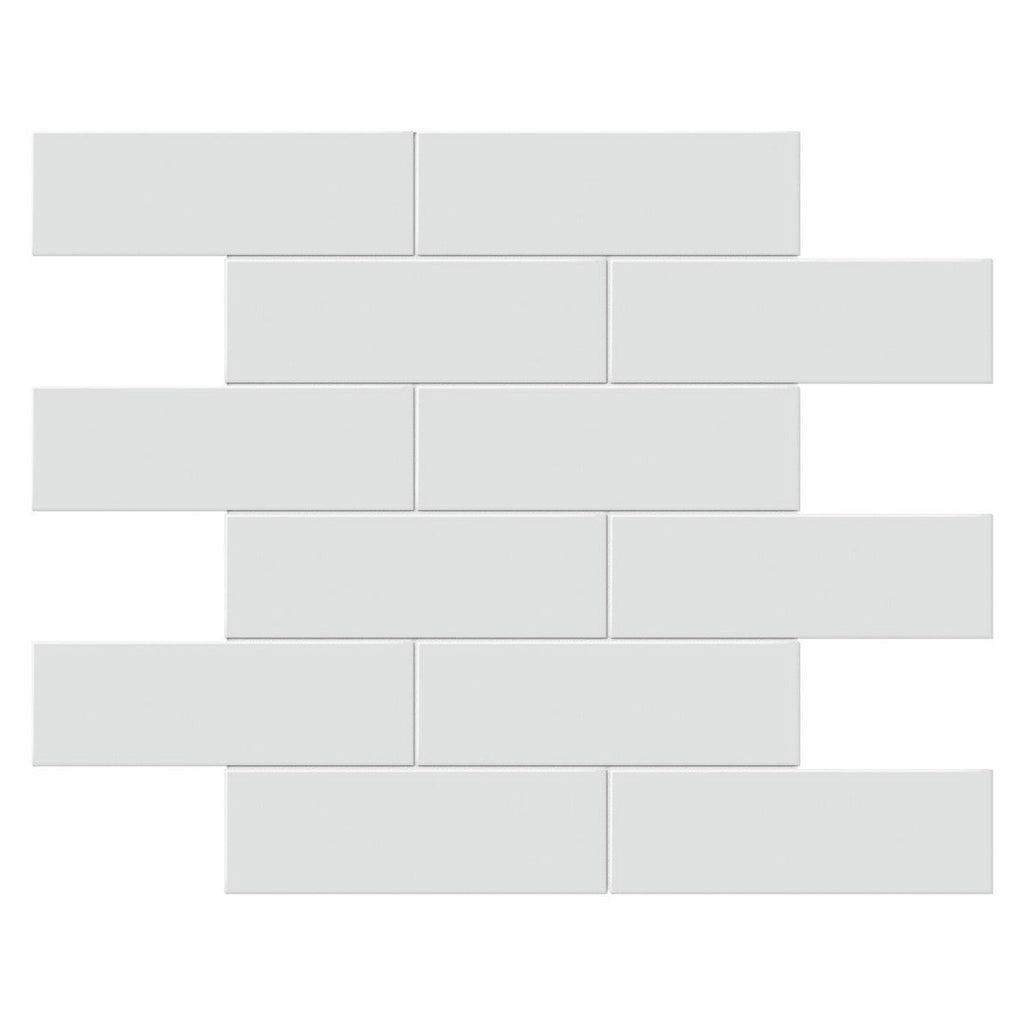 Tesoro Soho 11.75" x 11.75" Pressed Glossy Porcelain Brick Mosaic delivers a sleek, updated take on the subway tile with its glossy porcelain brick mosaic format. Use this 11.75x11.75 sheet for a shimmering kitchen backsplash or shower wall, adding depth and light reflection with its refined, pressed glossy finish.