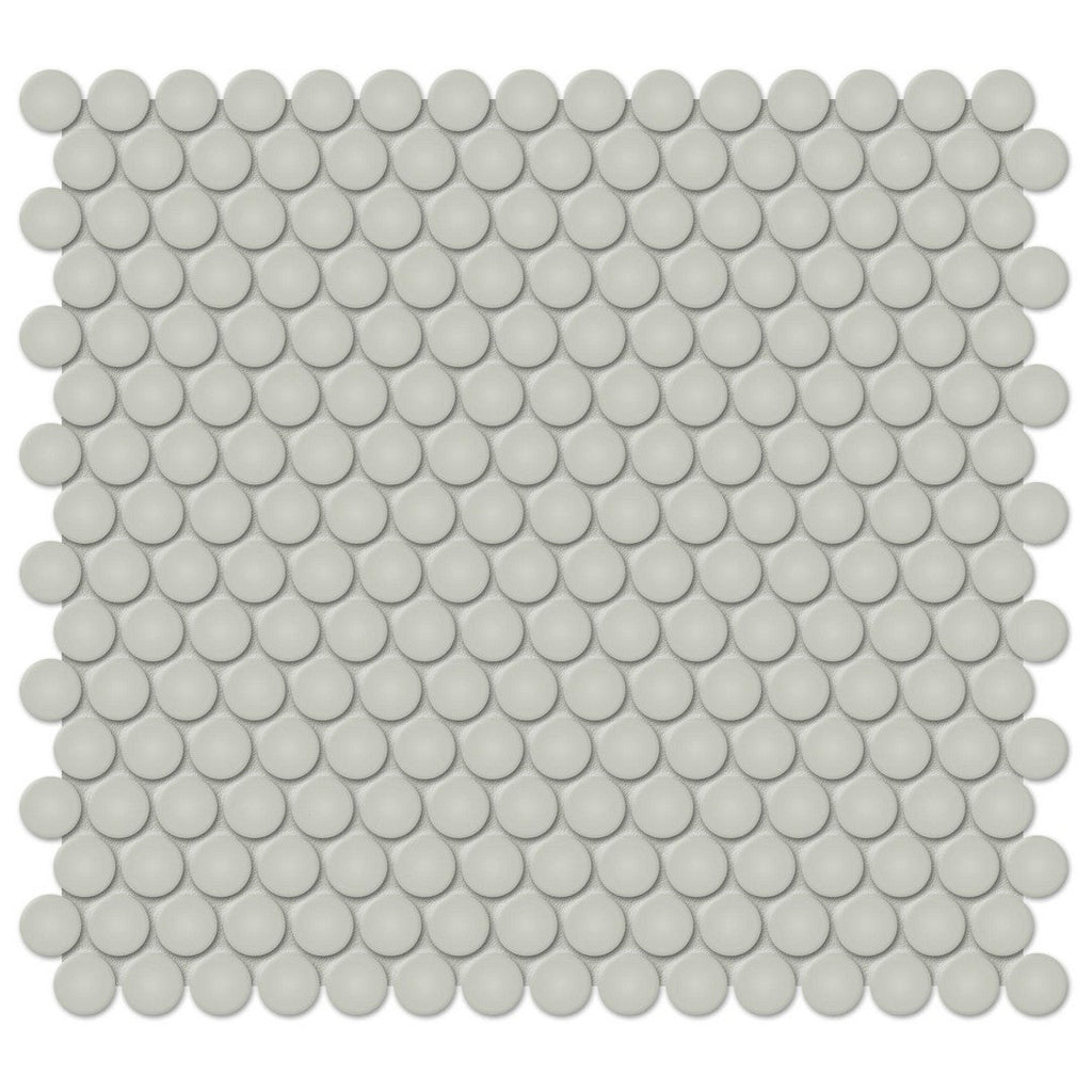Tesoro Soho 12.25" x 11.5" Pressed Matte Porcelain Penny Round Mosaic offers a subtle, textural look with its popular penny round mosaic and understated matte porcelain surface. Durable and slip-resistant, this 12.25x11.5 Soho mosaic is ideal for creating a classic yet modern look on bathroom floors or kitchen walls.