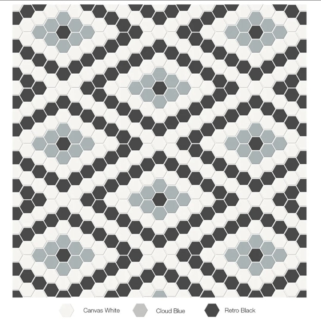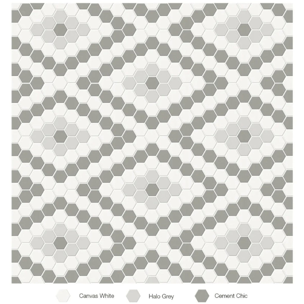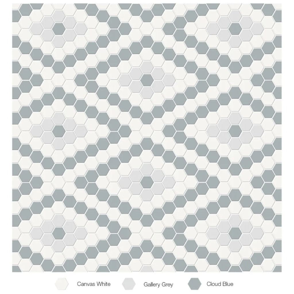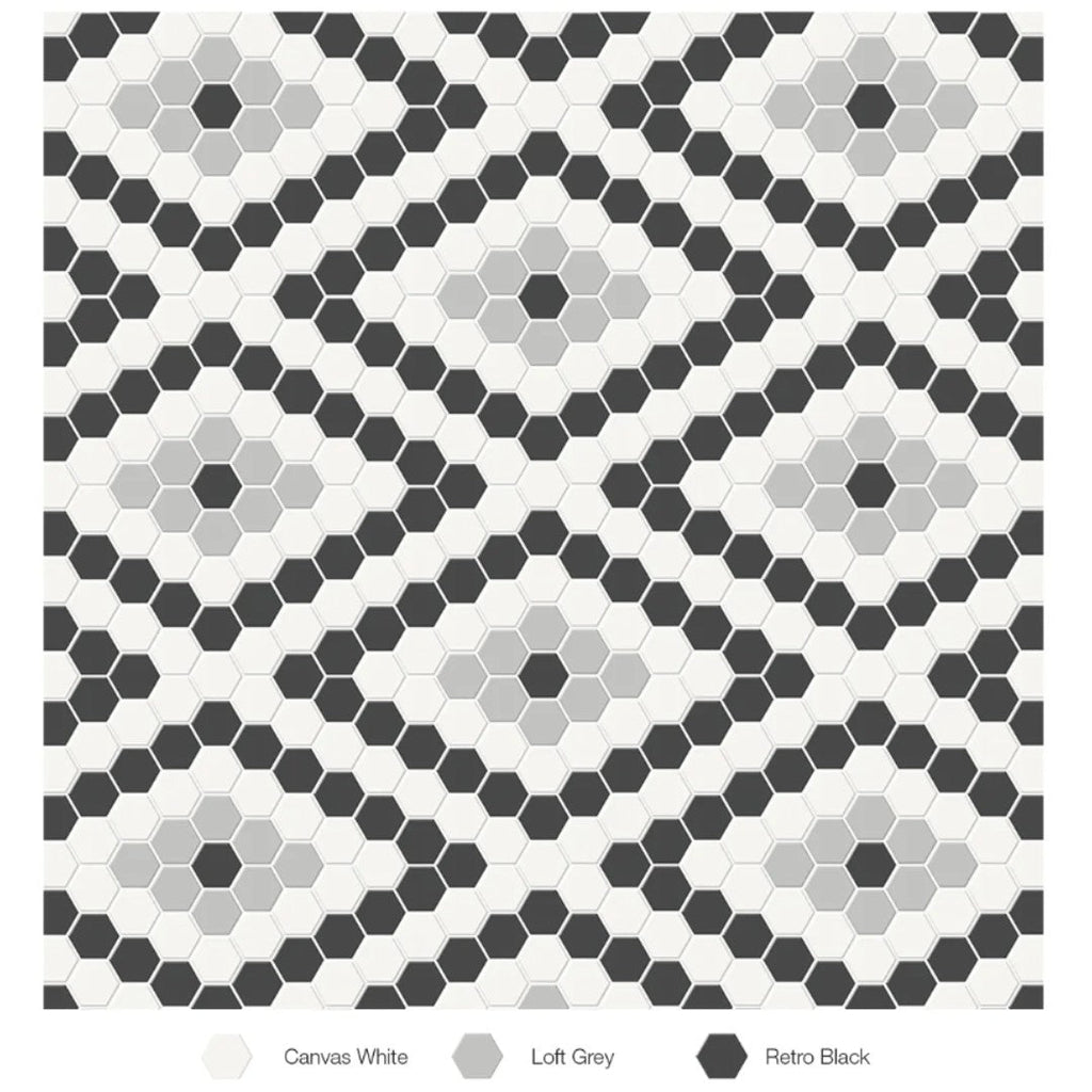 Tesoro Soho 13.25" x 7.75" Pressed Matte Porcelain Diamond Blend Mosaic features a striking, geometric diamond blend mosaic design in a practical matte porcelain finish. This unique 13.25x7.75 sheet is the ultimate choice for creating a bold, contemporary accent wall or backsplash, using blended colors to highlight the pattern.