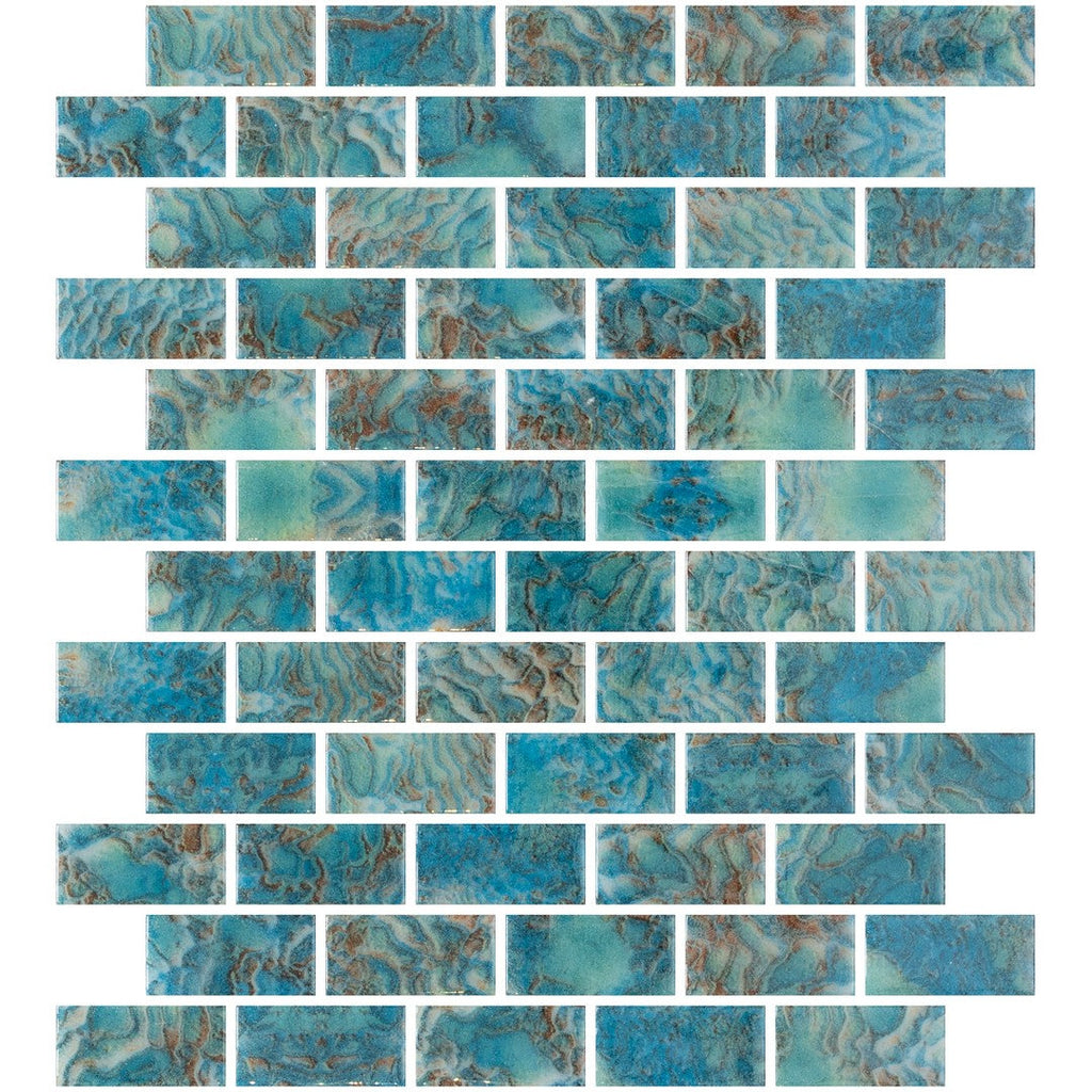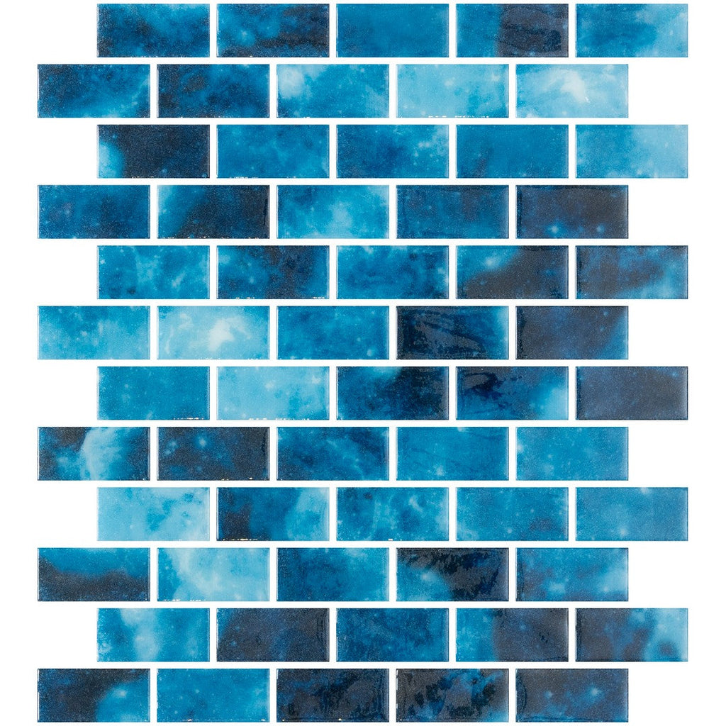 Tesoro Vanguard 12.25" x 10" Interlocking 1x2" Glass Mosaic provides a modern brick-joint pattern with 1x2 inch glass chips. This interlocking glass mosaic offers a sleek, multi-tonal surface that is perfect for contemporary backsplashes and accent walls, adding a clean, rectilinear visual.